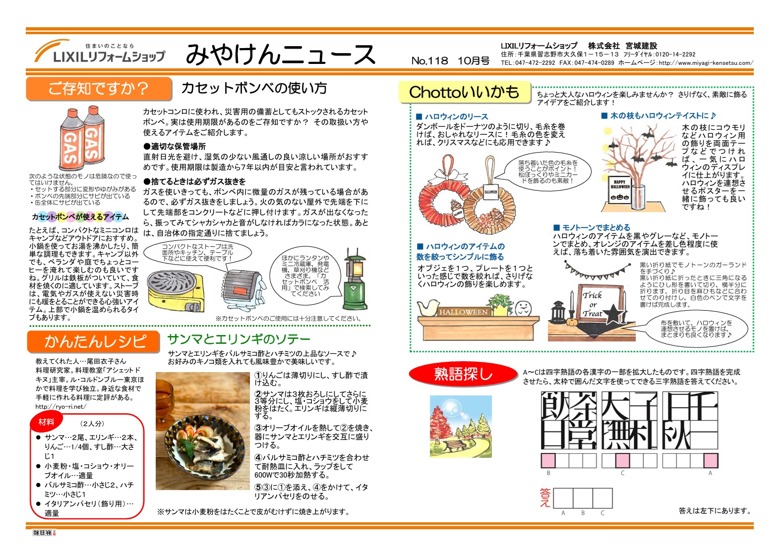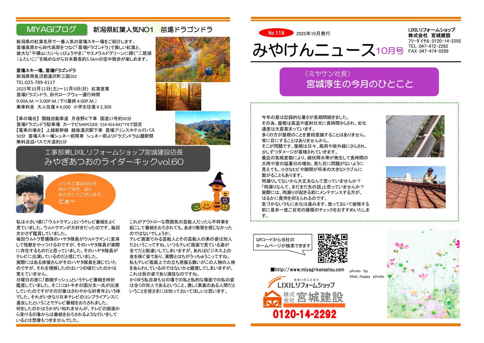 みやけんニュース10月号 NO.118(2025年10月発行) みやけんニュース LIXILニュースレター 2025.10.01 Tweet みやけんニュース 2025.10月号 宮城建設が毎月発行しているニュースレター 「みやけんニュース」No.118(2025年10月発行)です。 毎日の生活に役立つ情報やイベントのお知らせが満載です。 是非ご一読ください Tweet